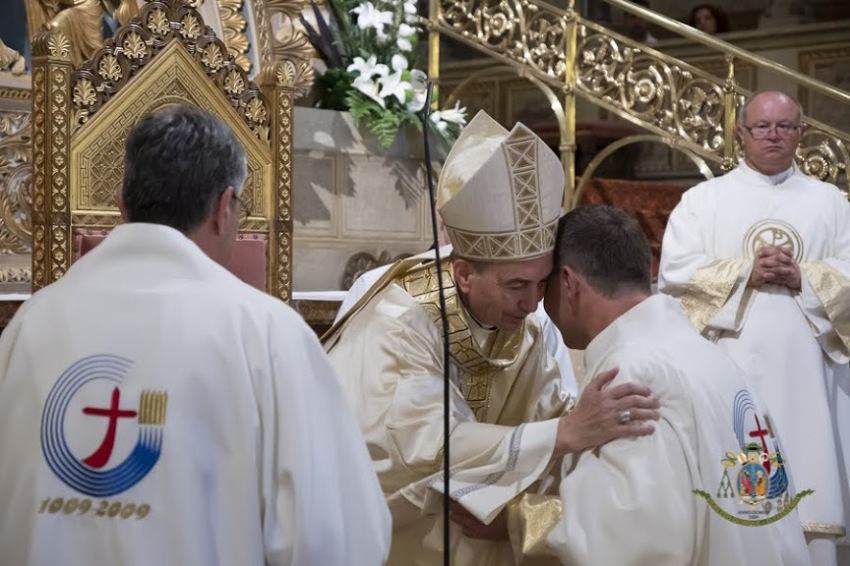 „Ebben a szentelésben azt is ünnepeljük, hogy a Lélek ajándékaként testvéreink, akik az állandó diakonátusra vállalkoznak, házas emberként családjukkal együtt kívánják betölteni ezt a szolgálatot. Az egyház ősi szolgálata ez, a szentségi rendben megújítva. Hisszük, hogy itt az egyházmegyében, a most szentelendő két testvérünk által is, Isten üdvösséges ereje hatékonyabban, erősebben tud megjelenni.” – hangsúlyozta a megyéspüspök.