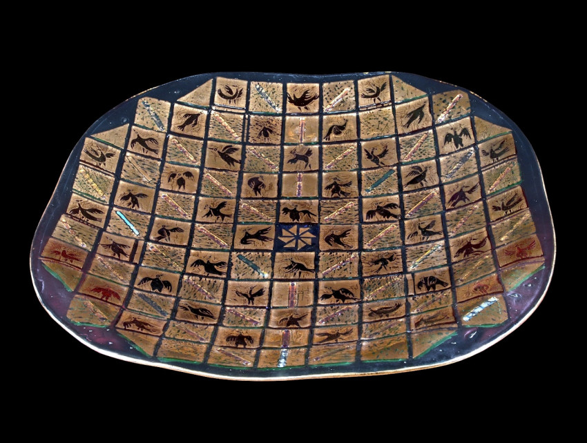 2008, arannyal festett, hajlított síküveg, 63 x 63 x 8cm (Kecskeméti Katona József Múzeum)