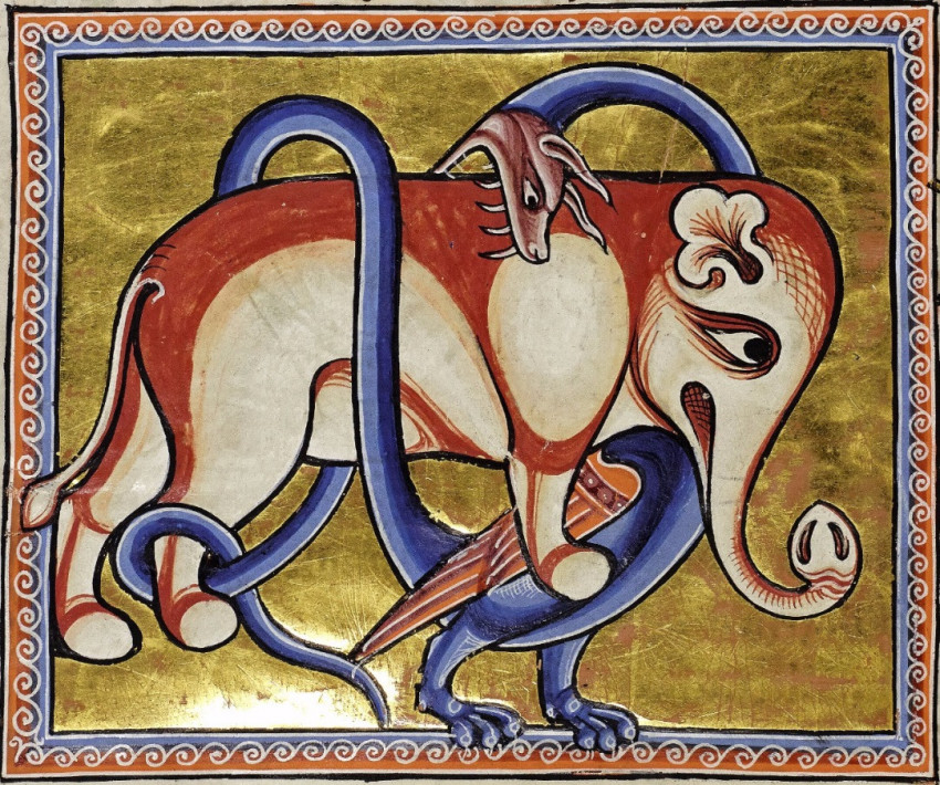 A sárkány megfojt egy elefántot, 13. század eleje