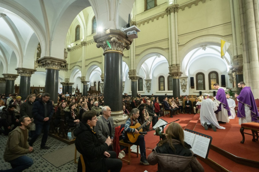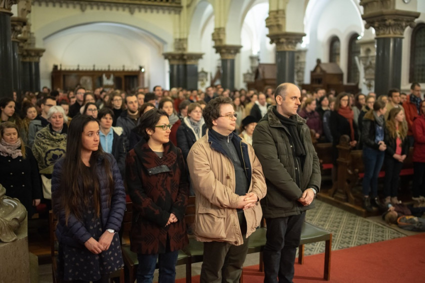 Nagyböjt első vasárnapja, március 10., a Jezsuita Nyolcas szentmise a pesti Jézus Szíve-templomban. A mindig meghitt alkalom most különlegesen családiasan zajlik: az oltár előtt félkörben tizenkét fiatal ül. Ők a katekumenek, vagyis hittanulók, akik hónapok óta járnak a Horváth Árpád templomigazgató vezette közösség felkészítőcsoportjába. Az ambónál Bellovics Gábor segédlelkész kezdi a szertartást, baráti szavakkal üdvözölve a Katolikus Egyházba megtérni szándékozókat.