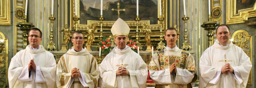 Pécsen hagyományosan a tanév végén van a pap- és diakónusszentelés, a kollégiumban azonban mindig az új tanév elején. Mint a tanulmányokat záró, és egyben az új életszakaszt is megnyitó esemény így igazán kifejezi, hogy a szentelendők levetik a régi embert, s felöltik az újat. Ez a szentelés emlékeztethet minket: a szeretetszolgálat, a diakónia, bár halált jelent a régi ember számára, mégis az új kezdete.