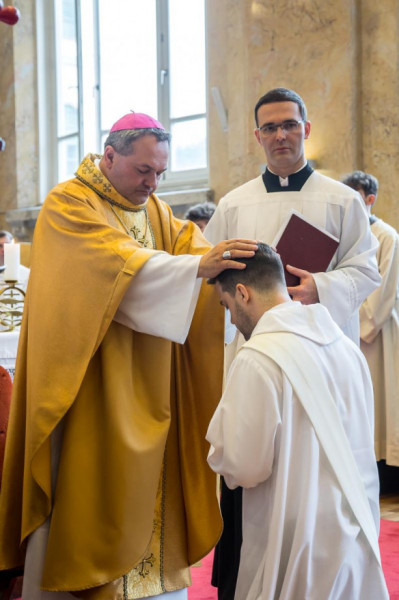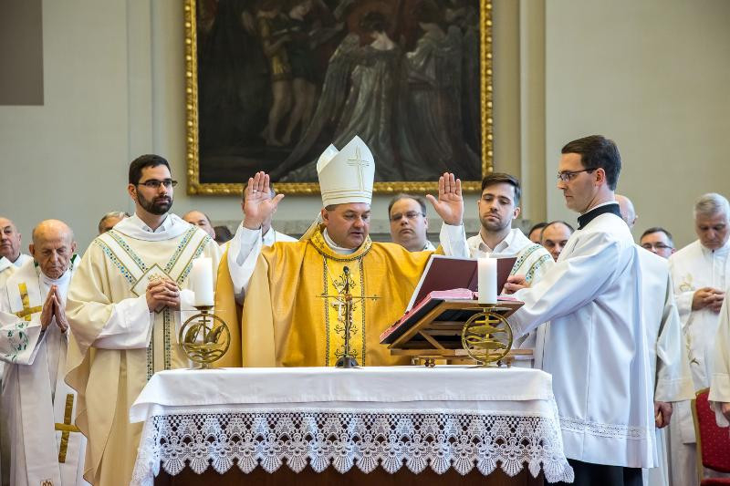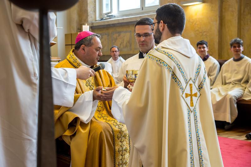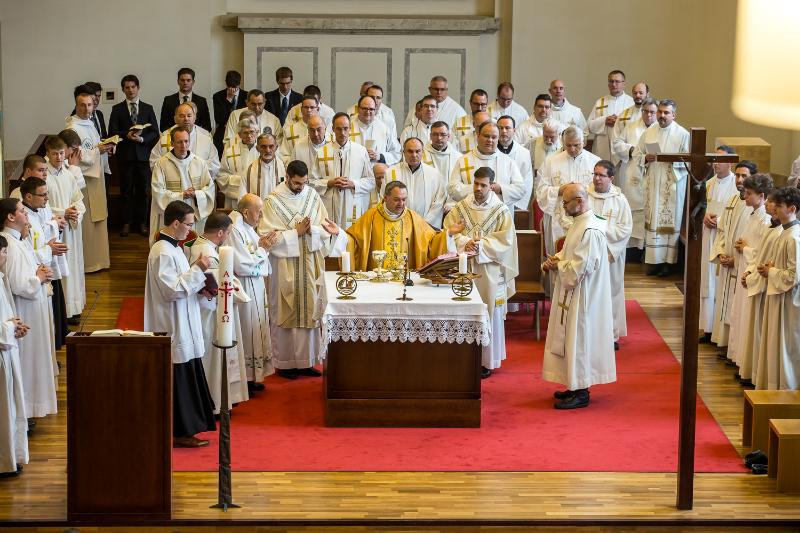 Jézus a legfontosabb feladatot és lelkületet úgy határozza meg, hogy a világba küld tanítani, papságban megélni. „A tanárság, a papság rendje és a szerzetesi fogadalom olyan egységet és olyan biztonságot teremt, amelyben megtaláljátok mindig magatokat.” De fontos, hogy ti legyetek benne – hangsúlyozta a püspök. „Azt a tudást, azt a szeretetet, azt a hitet, azt az emberi méltóságot, amit az Isten nektek adott, azt senki másnak nem adta oda, és senki más nem tudja ebben a világban elmondani. (…) Az az út és az a világ, amelyben elindultok, teljesen ismeretlen világ. Ezen az úton még a földön senki nem járt. Senki nem tudja megmondani nektek, hogy kell megélni ezt.”