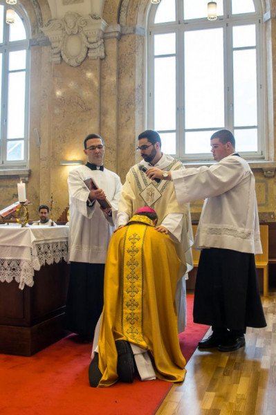 Felföldi László püspök a szentelendőkhöz intézett szentbeszédében a test, a lélek és a szellem egységét helyezte a középpontba, amely minden ember életének az alapja. E hármas egységet egy háromlábú székkel szemléltette, amely a föld legstabilabb ülőeszköze.