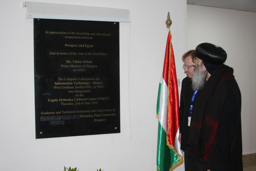 Június 2-án, Orbán Viktor miniszterelnöknek a Kopt Ortodox Kulturális Központban történő látogatásával egyidőben, Szuromi Szabolcs Anzelm, a PPKE rektora és Bishoy kopt metropolita közösen nyitották meg a legmodernebb eszközökkel felszerelt laborokat. Egyúttal leleplezték azt a gránit táblát, amely a magyar miniszterelnök látogatására elkészült termek felavatásának és a magyar-egyiptomi együttműködésnek állít emléket. A PPKE rektora és a Rafik S. Gabriel, a CEO-Modern Educational Services igazgatóhelyettese tárgyalásainak köszönhetően a kooperációban megvalósuló új, közös felsőoktatási intézmény működése így újabb jelentős mérföldkőhöz érkezett.