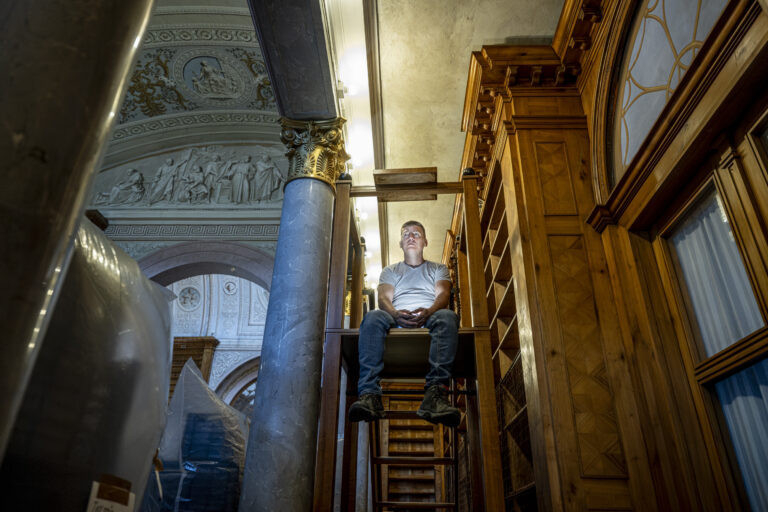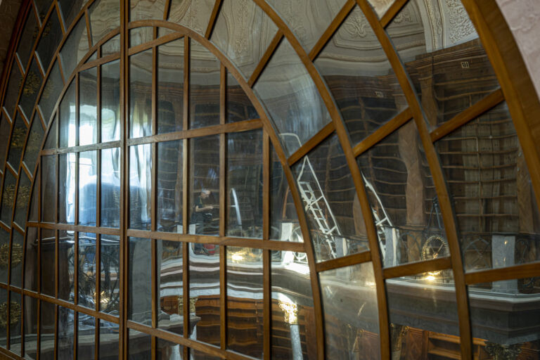Közel két évszázaddal később, néhány évvel ezelőtt érkezett a különleges felkérés: Gyimesi László építse meg a hiányzó könyvtári állványrendszert. Persze az eredeti stílushoz igazodva, egyedi, könnyen kezelhető és biztonságos megoldással, mert elég komoly belmagasságok vannak a kétszintes térben. László sok időt töltött ekkor a könyvtárban és feltűnt neki az elődök másik, érthetetlen mulasztása, de erről kicsit később.