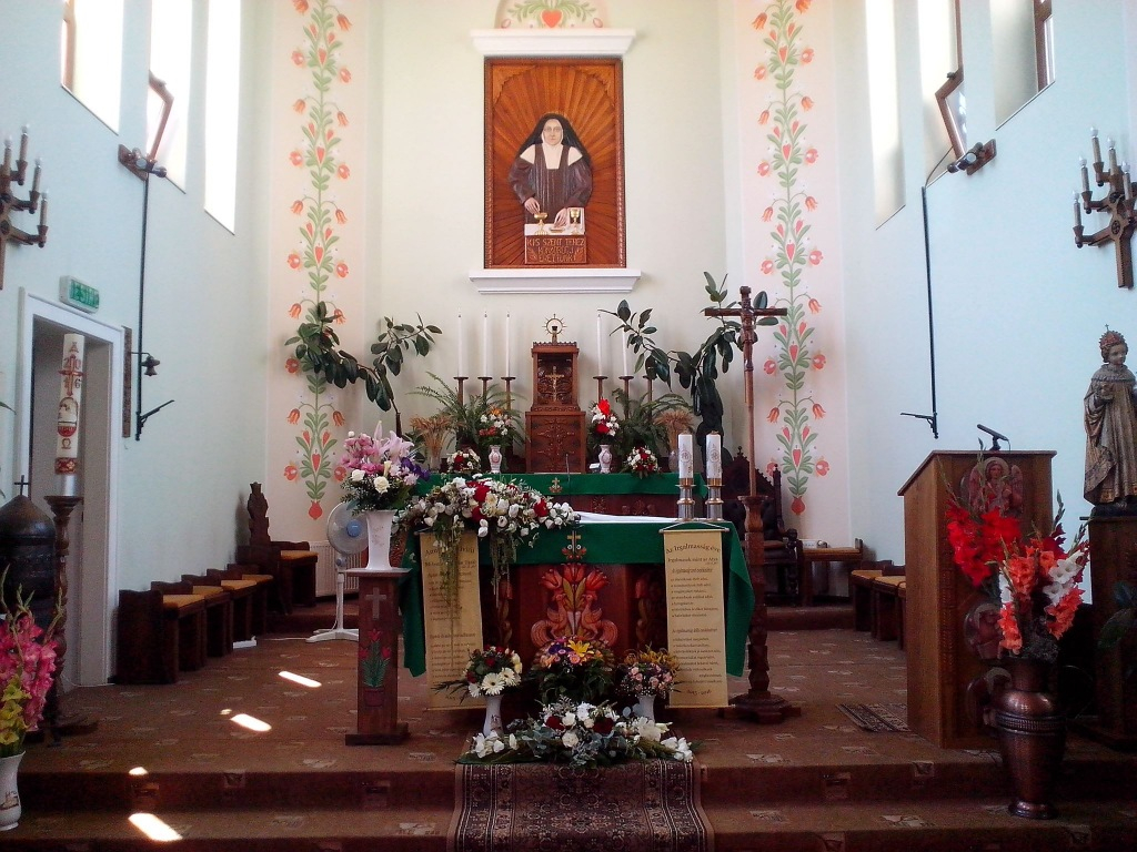 Különös figyelmet érdemel a templom védőszentje, Lisieux-i Szent Teréz, aki mindössze 24 évet élt, mégis oly sokat tett a hit elmélyítéséért – hangsúlyozta a főpásztor. Elmondta, hogy amikor Rómában járt egy kurzuson, a jelen lévő 144 püspöknek 75 percen keresztül beszéltek Terézről. „Mert igaz ugyan, hogy az Egyházat a püspökök és a papok vezetik, de igazán a szentek viszik előre” – fejezte ki Pál József Csaba, aki, mint mondta, sokat töprengett Szent Teréz példaértékű szent életén.