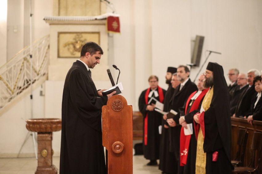 A megjelenteket házigazdaként Kondor Péter evangélikus püspök köszöntötte. A hívek ezután a Szentlélek eljöveteléért imádkoztak, majd a bűnvalló imádság után Lukács evangéliumából (Lk 11,37-44) hallgattak meg egy részt.