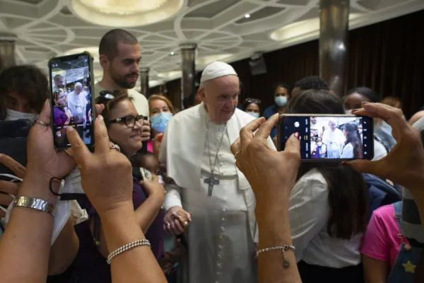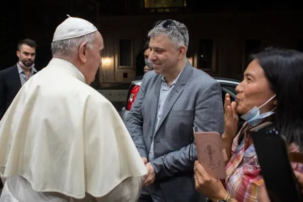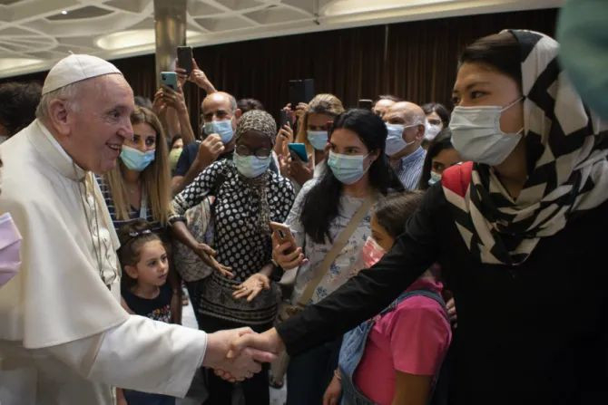 A Matteo Bruni által kiadott közlemény szerint a vetítés végén érkezett meg Ferenc pápa a VI. Pál terem átriumába, ahol elbeszélgetett a jelenlévőkkel, akik között volt húsz olyan menekült is, akik az elmúlt hetekben érkeztek Afganisztánból – a pápa szeretetteli és vigasztaló szavakkal fordult hozzájuk.