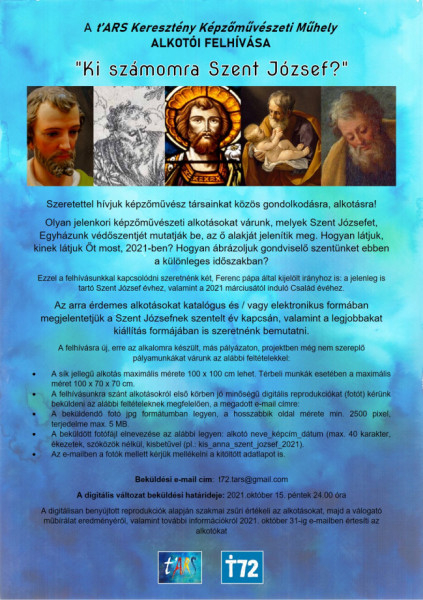 A Ki számomra Szent József? című alkotói pályázatukra most olyan kortárs képzőművészeti alkotásokat várnak, amelyek Szent Józsefet, a katolikus egyház védőszentjét mutatják be, illetve az ő alakját jelenítik meg.