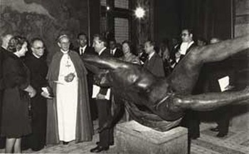 Egy évvel megválasztása után, 1964. május 7-én VI. Pál pápa a Sixtus-kápolnában fogadta a művészeket. Híres beszédében kifejtette esztétikai nézeteit. Szerinte a művész arra hivatott, hogy láthatóvá tegye teljes kifejező szabadságával és teremtő lendületével a transzcendenst, a kifejezhetetlent, a szóval kimondhatatlant.