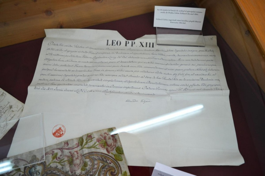 A tárlókban kiállított anyagokról Nagy Mihály Zoltán beszélt a május 4-i megnyitón. Bemutatta a püspökök és a kanonok kinevezési iratait, valamint Schlauch Lőrinc nagyváradi püspök 1893-as bíborosi kinevezésének okiratát. A kiállításon megtekinthető egy 1698-as irat is, mely a püspökség török hódoltság utáni újraszervezéséről szól. Egy másik vitrinben láthatóak a püspöki vizitációs jegyzőkönyvek, historia domusok, valamint különböző plébániai iratok. Megtekinthető egy 19. századi káptalani uradalmi térkép, valamint a székesegyház építési munkálatainak jegyzéke is.