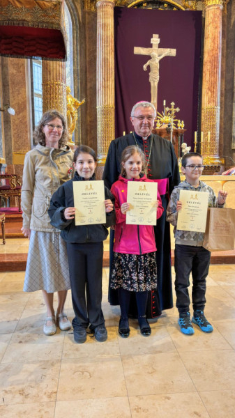 Az elismerő okleveleket, illetve az első három helyen végzettek a tárgyjutalmukat Veres András győri megyéspüspöktől és Balázs Tamás plébánostól vehették át.