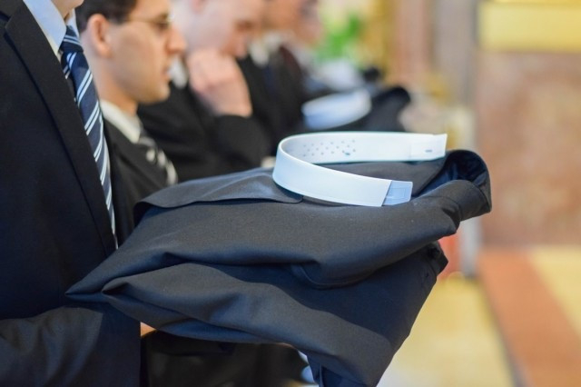 Szentbeszédében a megyéspüspök hangsúlyozta, hogy életformája által a pap jel a világ számára, amit nem mindenki ért. Jézus nagy értéknek tekintette a házasság szövetségét, ő mégsem ezt az életformát választotta. A papi életformát Isten rendkívüli szeretete nélkül nem lehet megélni, sem megérteni. A pap a feltámadt Krisztushoz tartozik. „A feltámadás után nem nősülnek, férjhez sem mennek, hanem úgy élnek, mint Isten angyalai a mennyben” (Mt 22,30). Életformája miatt a pap jel a világ számára, éppen ezért a viselete is jel. A papi ruha jelzi az odaadottságot. Elköteleződést fejez ki, azt, hogy viselője a kiválasztott, akit Krisztus hívott meg a közvetlen szolgálatára. Akik felöltik a reverendát, azoknak tiszteletet, szeretetet és felelősséget kell érezniük egymás iránt, hogy segítsék egymást a lelki érés útján, amely elvezet a papszenteléshez. A papi ruha szent öltözék, azért lesz szentté, mert a pap a megszentelés szolgálatát végzi benne. Nem a ruha teszi szentté az embert, nem a ruha teszi a papot Krisztus szolgájává. Fel kell nőni ahhoz, amit ez az öltözet képvisel, ahhoz aki meghívta a papot a szolgálatára. Isten és a hivatás iránti szeretetből méltónak kell maradni ahhoz, akinek ruháját hordozzuk, az Egyházhoz és magához Jézus Krisztushoz – hangsúlyozta a szónok. – Pál apostol is azt üzeni: „Újuljatok meg gondolkodástok szellemében, és öltsétek magatokra az új embert, aki Isten képére teremtetett, valóban igaz és szent emberként” (Ef 4,23–24). Ne csupán a Krisztushoz tartozás ruháját öltsétek fel, hanem magát Jézus Krisztust! Ismerjétek meg őt egyre mélyebben. A tanítások, az imádságok, az elmélkedések segítenek titeket mindebben. Krisztus egyre mélyebb megismerése elvezet a még mélyebb elköteleződéshez, és annak a felismeréséhez, hogy „Élek, de már nem én, hanem Krisztus él énbennem” (Gal 2,20) – bátorította a megyéspüspök a papnövendékeket.
