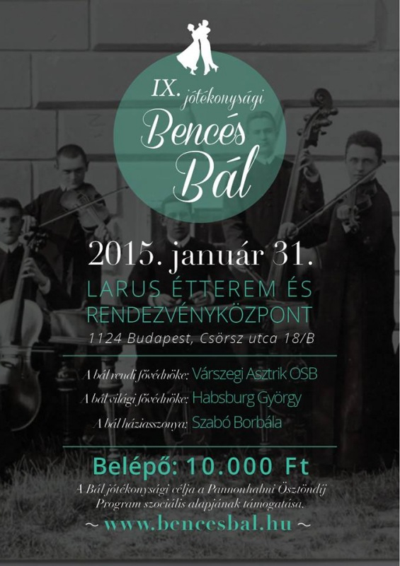 Az immár kilencedik alkalommal megrendezett Bencés Bál rendi fővédnöke Várszegi Asztrik pannonhalmi főapát, világi fővédnöke Habsburg György, háziasszonya pedig Szabó Borbála író.