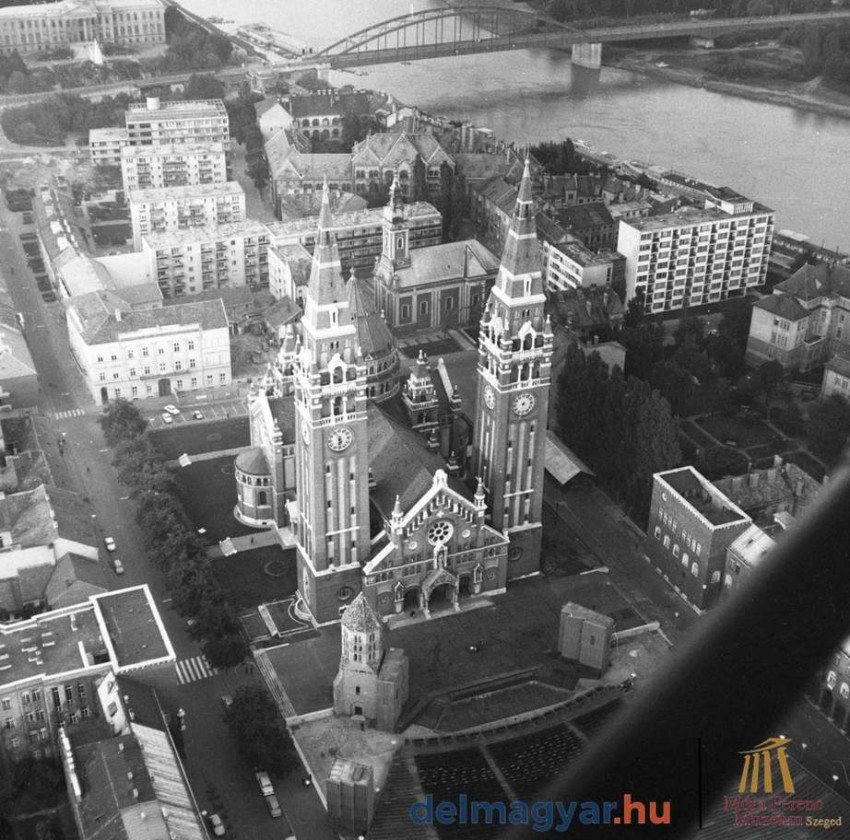 A Fogadalmi templom és Szeged belvárosa légi felvételről 1968 májusában