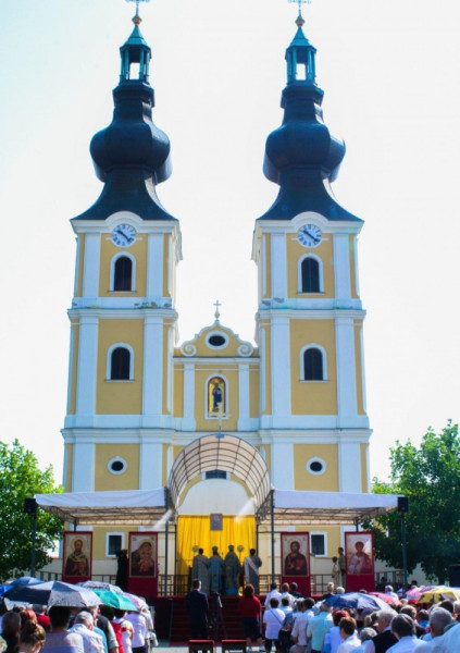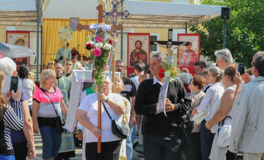 „Egy gyermek születése mindig nagy öröm a családban, és ma, az Istenszülő születése napján örömünnepre jöttünk össze – kezdte prédikációját Kocsis Fülöp metropolita. – Az evangéliumban Jézus a keresztről beszél: »ha majd felmagasztaltatom a keresztre, mindenkit magamhoz vonzok«. A mai napon tehát nemcsak az örömről, hanem a keresztről is elmélkedünk. Hamarosan a Szent Kereszt felmagasztalása lesz, szeptember 14-én, amikor kitesszük a keresztet a templom közepére. A napokban tehát a keresztre figyelünk…a keresztet nem tudjuk megúszni, ezzel szembesülnünk kell…, ahogy Jézus mondja: „aki utánam akar jönni, tagadja meg magát, vegye föl keresztjét!” A kereszthordozás nélkülözhetetlen a Krisztus-követésben, ettől nem kell félnünk. Ezzel nem valami nyűgöt tesz a Jóisten a nyakunkba, hanem megajándékoz azzal, hogy még szorosabbra fűződik a kapcsolatunk vele. A kereszten mutatta meg nekünk, hogy mennyire szeret minket! Amikor bármikor keresztet látunk, akár egy templomon, mindig jusson eszünkbe: Isten úgy szeret minket, hogy egyszülött Fiát adta értünk. A kereszt mindig Isten szeretetének üzenete. Hogyan lehet ez? Hiszen a kereszt nehéz. Csak akkor nem lesz nehéz, ha Krisztussal együtt visszük. Azt ugyanis nem kérte tőlünk, hogy egyedül cipeljük. Soha nem kéri tőlünk, hogy a terhet, betegséget, fájdalmat egyedül hordozzuk. Vegyük észre, hogy Jézus minden pillanatban ott van velünk. Ez az egyik fontos tanácsom…