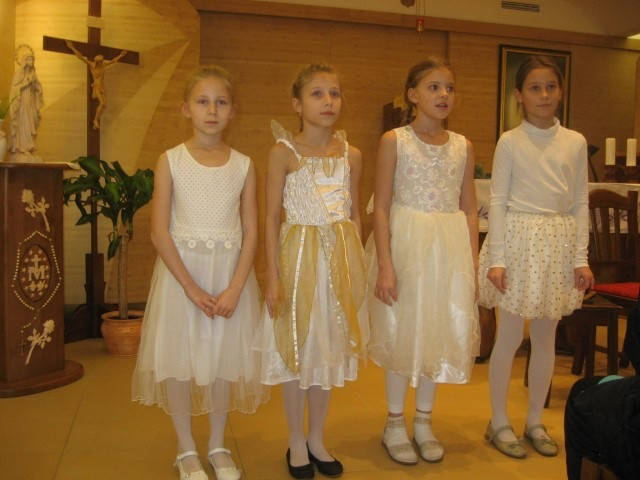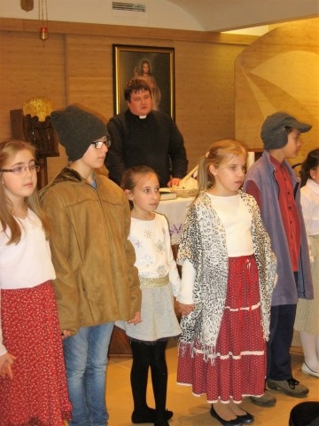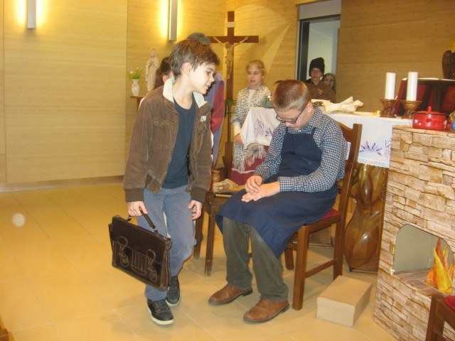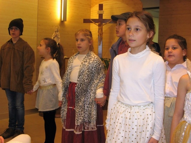 Jelmezes előadásukban a gyerekek Tolsztoj meséjét idézték fel a kórházkápolnában. A történet főszereplője, Panov apó, az idős suszter karácsony éjszakáján arra gondolt, hogy ha a Kisded az ő házába érkezne, akkor milyen szeretettel gondoskodna róla.