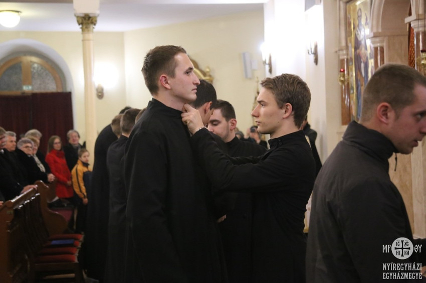 A vasárnap esti vecsernye szertartásának keretében Orosz Atanáz miskolci püspök és Szocska Ábel nyíregyházi apostoli kormányzó közreműködésével került sor a másodéves papnövendékek beöltözésére. Figeczki Gábor, Gaál Richárd, Gémes Péter, Ivancsó Máté, Soltész Márk, Szabó Csaba, a nyíregyházi papnevelő intézet növendékei és a központi szemináriumban tanuló Dévai Marcell az előkészületi év és két főiskolai tanév után ölthették magukra a reverendát.