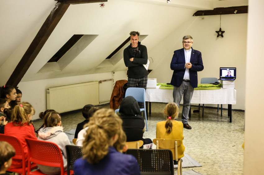A vidám, kacagással teli, gyerekek nyelvén zajló budapesti könyvbemutató házigazdája Morva Emília, a Magyar Máltai Szereteszolgálat Közép-magyarországi Regionális Központjának vezetője és Kutas Zsuzsa, a Befogadás Háza Zuglói Családok Átmeneti Otthona vezetője volt.