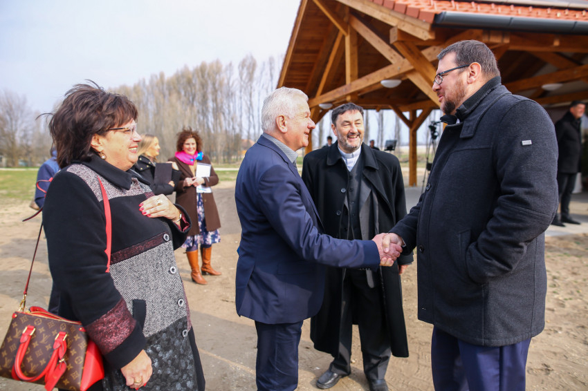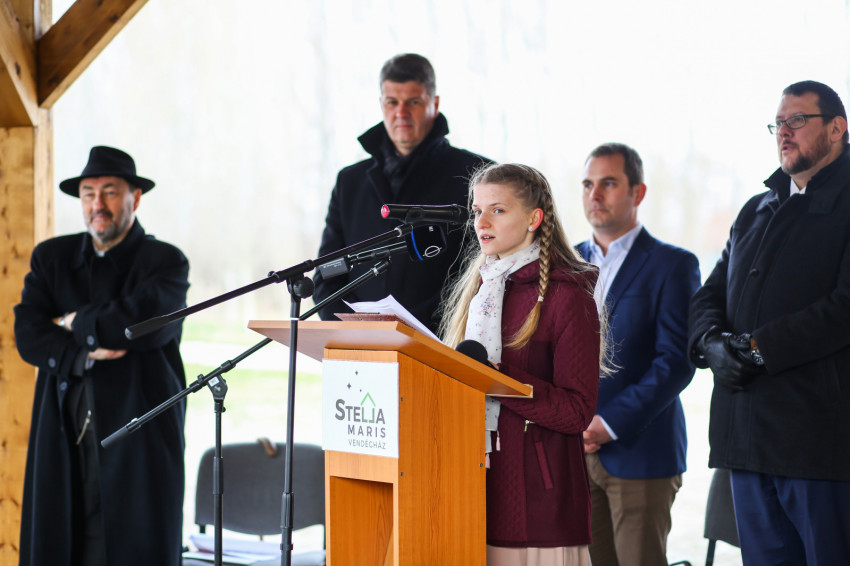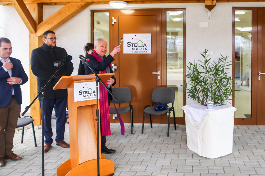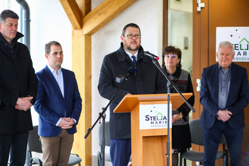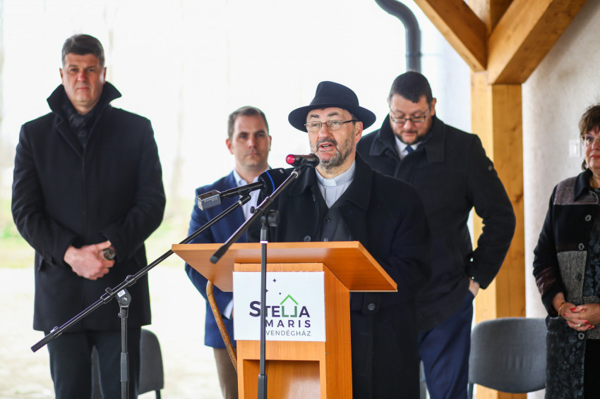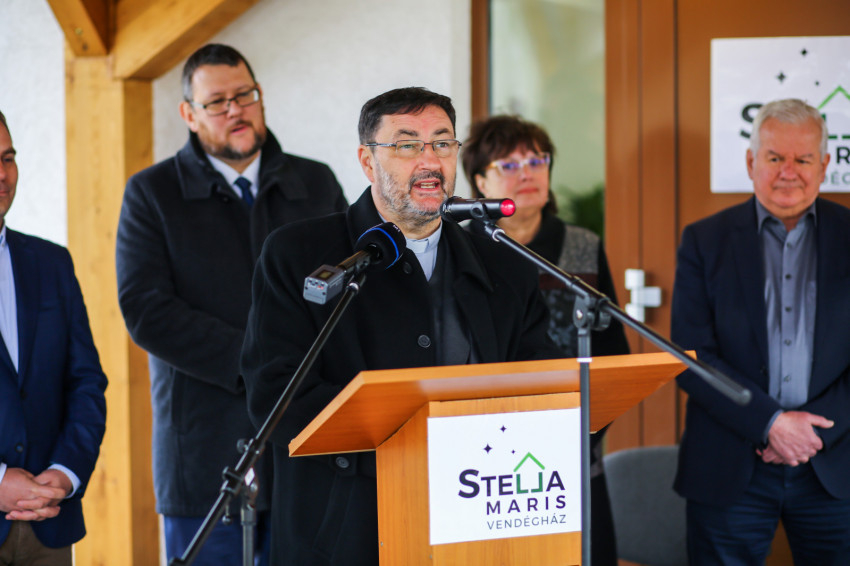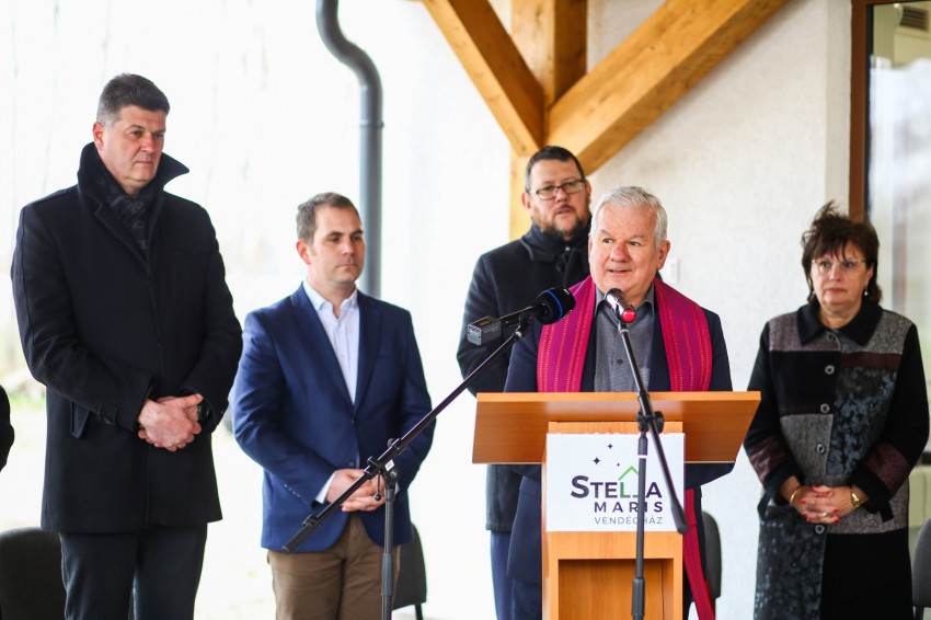 A Homokhátságon eszünkbe jut a Bibliából a homokra építő ember példázata – kezdte köszöntőjét Fürjes Zoltán egyházi és nemzetiségi kapcsolatokért felelős helyettes államtitkár. „Valóban sorsdöntő, milyen alapra építünk. Jönnek viharok, haramiák, és erodálják a felépítményünket, az alaptól függően akár el is pusztíthatják. Életünkkel is hasonló a helyzet. Minket is érnek viharok, nehézségek, kell a szilárd alap és a kötőanyag, ami mindezt összekapcsolja. A szilárd alap Isten szava, a Szentírás, a kötőanyag a hit, vallás. De szükség van mesterekre is, ha építkezni akarunk. A fő mester Jézus, a közvetítő mesterek a papok, az Egyház, hiszen a sziklára épített ház is időről időre megerősítésre szorul. Ezt köszönhetjük az Egyháznak, és ezért fontosak olyan helyek, mint a Stella Maris, a megállás, elcsendesedés, közösségi együttlét, tanulás helye. Így építhető ennyi homokra tartós ház. Ebben a feladatvállalásban kívánja a kormány segíteni az egyházakat: templomok, közösségi központok építésével és felújításával, programok támogatásával. „Tisztában vagyunk felelősségünkkel, ránk számíthatnak, és mi is számítunk Önökre” – fogalmazott Fürjes Zoltán.