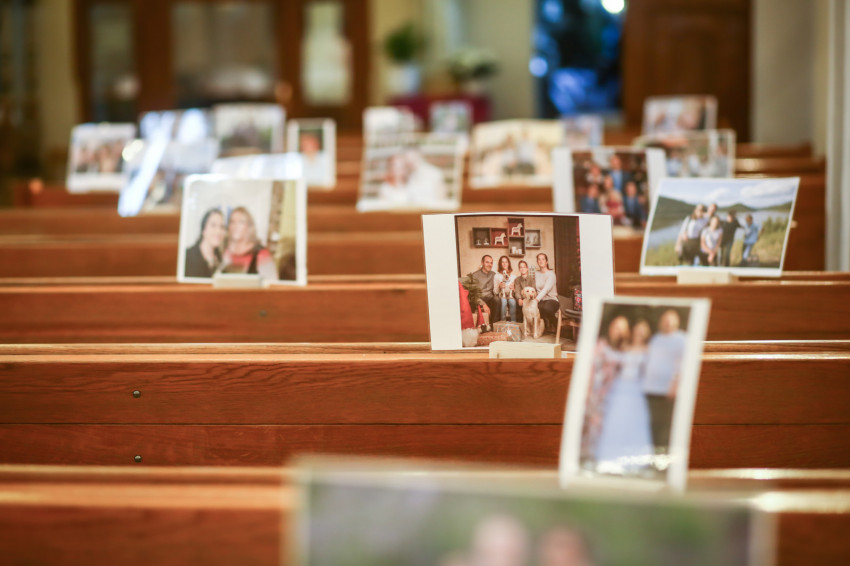 No, nem arról van szó, hogy fittyet hányunk a járványveszélyre, és holmi kihívásként a templomban adjuk tovább a vírusainkat, hanem hatvan család küldte el fotóit, melyeket kinyomtattunk, lamináltunk, és kis fatartókba állítva az oltár felé fordítottunk. Így nem a puszta falaknak kell beszélnie a szentmisét bemutató plébánosnak, Görbe József atyának és a diakónusnak, Lauer Tamásnak.