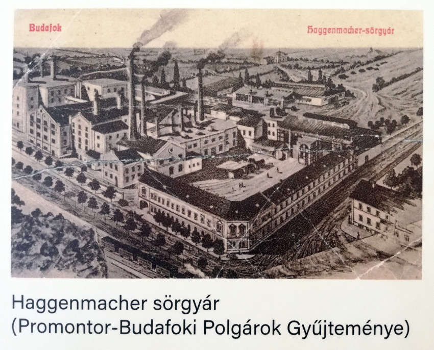 Egy másik képen a Haggenmacher-sörgyár épületcsoportját és füstölő kéményeit látni a Sörház utca és a Nagytétényi út sarkán. Az ipar megjelenését a Kutyavilla halászcsárda és a csepeli kompátkelőhely mellett 1716-ban létesített Braxatoria (serfőzde) megépülésétől számítják. Ez a csupán négy-öt embert foglalkoztató serfőző üzem Buda városától kapott működési engedélyt, tulajdonosa Reiter János volt. Frohner János bécsi szállodás aztán az 1860-as évek végén nagy sörgyár építésébe kezdett. A félbemaradt gyárépületet a már említett ifjabb Haggenmacher Henrik vásárolta meg. Az ötvenezer négyzetméter területű, mintegy négy kilométer hosszú pincével rendelkező, 1873-ban üzembe helyezett gyárban a századfordulón már több mint négyszáz munkás dolgozott. 1908-ban a Haggenmacher Kőbányai és Budapesti Sörgyárak Rt. budafoki telephelyén éves szinten kétszázharmincezer hektoliter sört gyártottak. 1935-ben azonban véglegesen megszűnt itt a sörgyártás. A vörös téglás épületeket manapság egymás után hozzák rendbe, és műtermeket, kulturális intézményeket, kiállítótermeket alakítanak ki bennük.