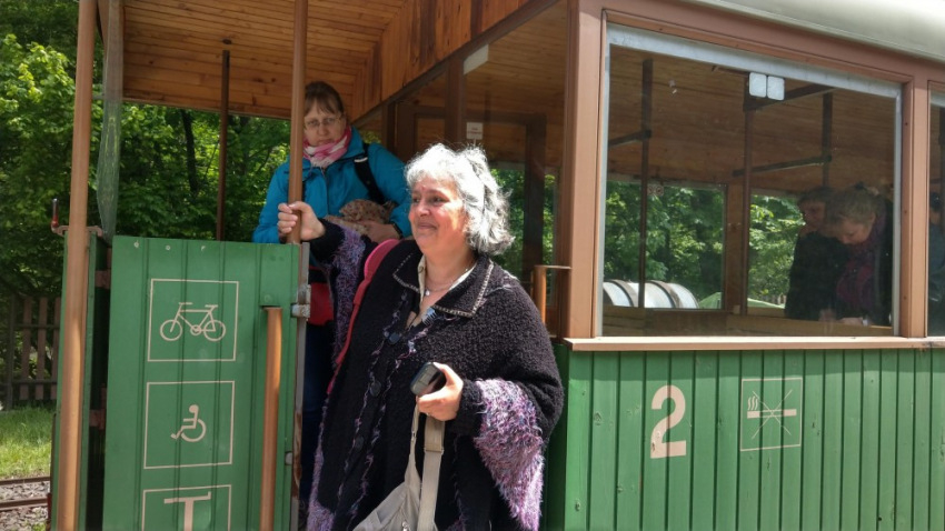 Börzsöny zöld erdejében kismozdony, kisvasút, csúcsfordulók, kapaszkodók. Aztán visszafelé fékezés, mert akkor már ereszkedés. Közben megy az idő, sok beszélgetés, sütemény. Jegyet kell venni odafelé, sok számítgatás. Visszafelé mintha nem is ugyanaz az ember és ugyanaz a jegy: már a másik sarkát tépi.