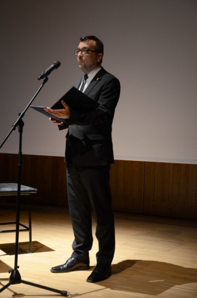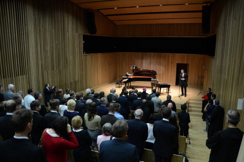Hegyi László helyettes államtitkár avatóbeszédében kiemelte, hogy Pannonhalma a múltban is élen járt a kultúra közvetítésében, éppúgy, ahogy a jelenben. Modern, letisztult terei ennek a missziónak a szolgálatában állnak, ebbe a sorba illeszkedik az új díszterem. Egyszerre nyílik lehetőség a gimnázium és Főapátság igényeinek kiszolgálására és a környék kulturális központi funkciójának betöltésére.