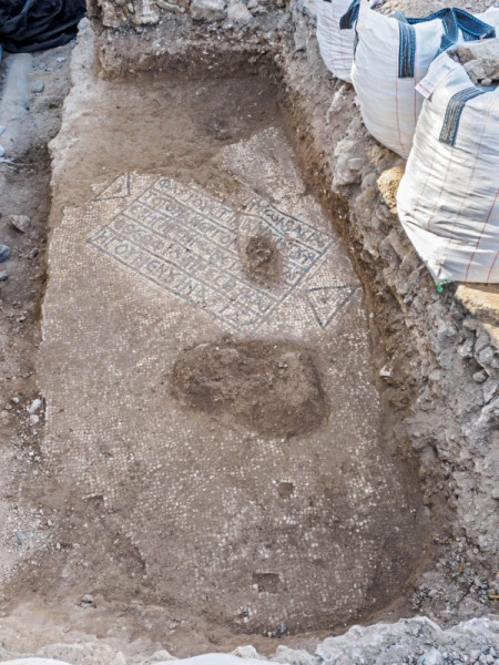 A közművek kiépítése előtt végzett ásatáson csodálatos módon épségben előbukkant görög feliratos mozaik egy keresztény zarándokokat elszállásoló korabeli előkelő szálláshely padlóját díszíthette ezerötszáz évvel ezelőtt. „Legkegyesebb Jusztinianosz Flaviosz császárunk idején, valamint a legistenfélőbb pap és apát, Konsztantinosz idején építették és emelték ezt az épületet, a tizennegyedik indikcióban” – áll a szövegben.