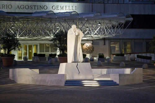 Először 1981-ben az ellene végrehajtott merénylet után, az utolsó két alkalommal pedig 2005-ben kezelték itt. II. János Pál „Harmadik Vatikánnak” nevezte el a klinikát, amely most a lengyel pápa szentté avatását ünnepli. Az előcsarnokban óriáskivetítőt állítottak föl, hogy az egészségügyi intézmény dolgozói és betegei követhessék a Szent Péter-téren zajló szertartást. Délután pedig a kórházban dolgozó ferencesek és egyházi személyek a harmadik emeleti kápolnából körmenetet tartanak a kórház előtti térre, ahol II. János Pál pápa szobra áll.