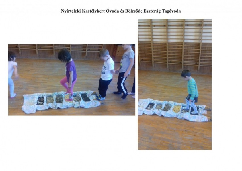 Az óvoda már rendelkezik szabadtéri Kneipp-ösvénnyel, melyet nyáron és kora ősszel mezítláb használhatnak a gyermekek, s amelyen sétálva sokféle felületet érzékelnek. A különféle anyagok masszírozzák, stimulálják a talpat, ami jótékonyan hat az egészségre. Most itt is készült benti Kneipp-taposó, főként természetes anyagokból: a 16 ládába többek között mogyoró, kukorica, dió, kukoricacsutka, de pamutfonal és kocka is került. A taposó rendszeres használata természetes út a refluxos gyermekek gyógyulásában. Az egészségmegőrzésben nyújt segítséget az óvoda sószobája is.