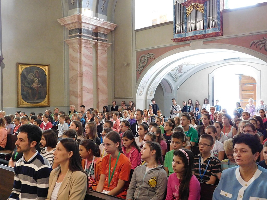 A mátraverebélyi tábor első napján a görögkatolikus Szent Liturgiát Bodnár Attila iskolalelkész celebrálta a kis misszionáriusokkal teli kegytemplomban.