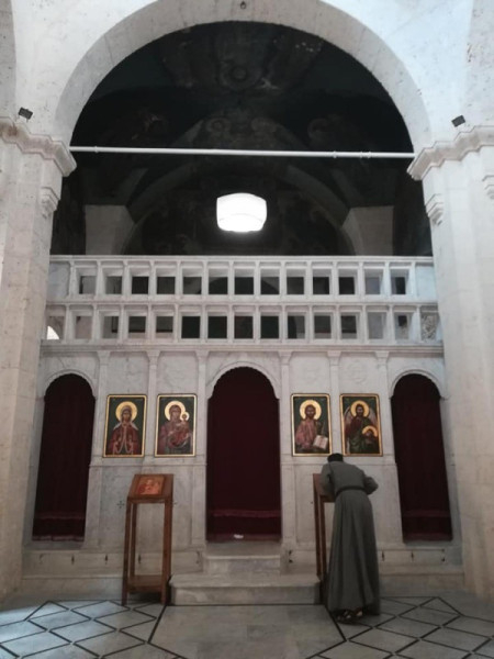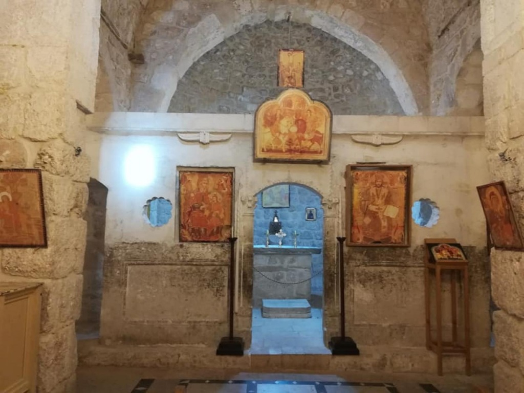 Megrongálták az oltárt is, amely még a pogány szentélyből származott, tehát szintén kétezer éves kőépítmény. A világhírű és felbecsülhetetlen értékű ikonok nem kerültek elő, ám a négyszáz éves harang, a cédrusajtó és néhány apróbb tárgy Bejrútban bukkant föl, melyeket egy jó szándékú és tehetős magánszemély megvásárolt és visszajuttatott a templomba. Egy helyi lány készségesen mesélte el a templom történetét, és Kocsis Fülöp kérésére elimádkozta óarám nyelven a Miatyánkot, illetve ugyanezen a nyelven néhány zsoltárverset is a Sokirgalmú himnuszból (135. zsoltár). Végül különösen finom, helyi édes borral kínálta a látogatókat.