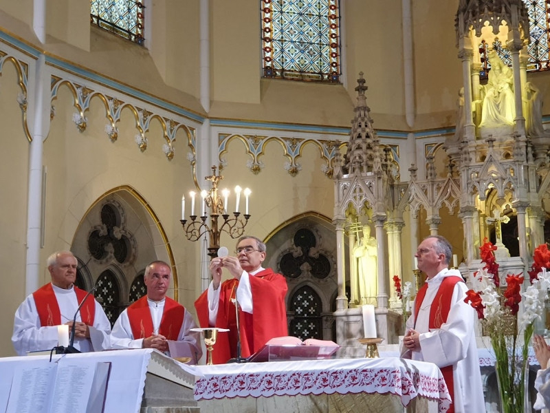 A szentmisén koncelebrált Nagy Károly, a templom plébánosa, valamint Kecskés Attila hatvani és Széles László lőrinci plébánosok a Váci Egyházmegyéből. A plébánia hívein kívül Kocsis Imre családtagjai, hívek a Váci Egyházmegyéből és a Szent Jeromos Bibliatársulat tagjai is részt vettek a szentmisén.