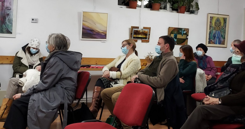 Felházi Lenke, a szervező szintén az ökumenikus imahét mottójához kapcsolta mondanivalóját. Kijelentette: „mi, művészek örök adventben élünk”; s tovább magyarázta ezt a lelkiállapotot: a művész várja az ihletet, keresi azt, és ez olykor gyötrelmes út. Ám a végén megszületik a mű, az alkotás, és benne felragyog, rajta átsugárzik az isteni ihletettség.