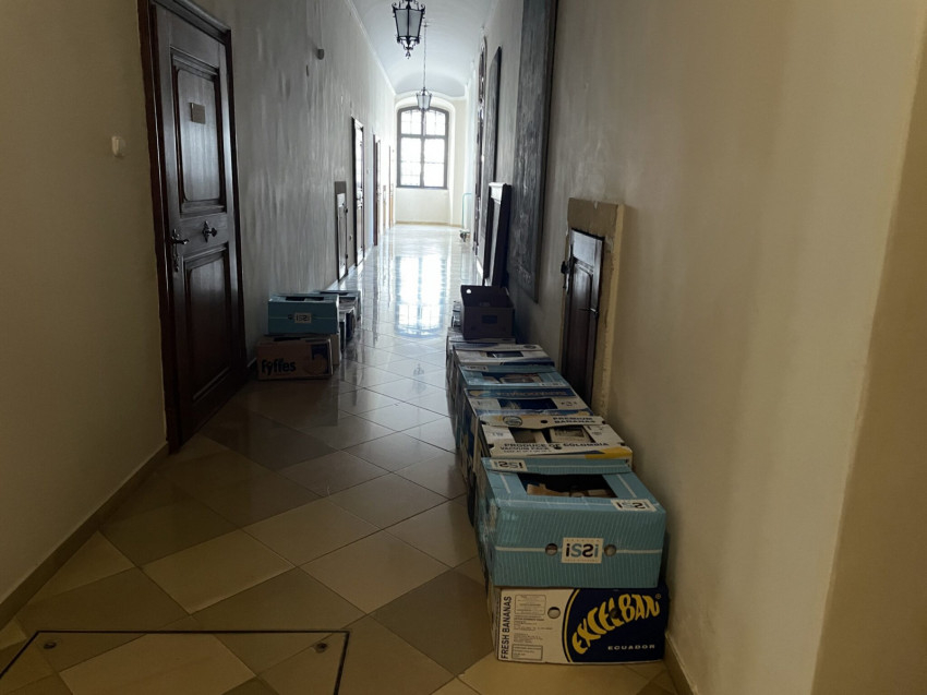 Az elmúlt héten a Veszprémi Főegyházmegyei Levéltár iratállományának áthelyezése kezdődött meg. Az első szakaszban az érseki hivatalként működő volt szemináriumi épület termeiben kialakított raktárakba költöztetik az iratok nagy részét; a későbbiekben a fennmaradó részt más raktárakban helyezik el.