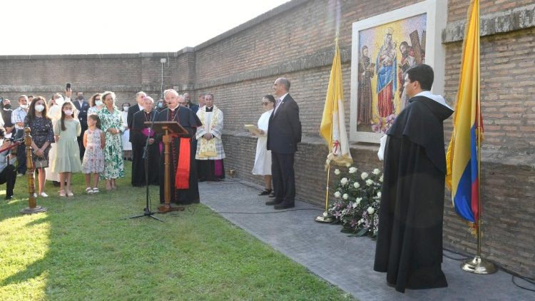A mozaikkép elhelyezésére és megáldására annak alkamából került sor, hogy a dél-amerikai ország ezekben a napokban ünnepli Kolumbia patrónája megkoronázásának századik évfordulóját. Szűz Máriát Latin-Amerikában sok helyen a Chiquinquirái Rózsafüzér Szűzanyja néven tisztelik. A név ahhoz a kegyképhez fűződik, amelyet a Chiquinquirái Rózsafüzér Szűzanyja bazilika őriz. A kegykép, amelyet Alonso de Narváez festett pamutvászonra a bennszülött indiánok hagyományos technikájával 1560 és 1562 között, a kolumbiai keresztény vallási művészet egyik legősibb tanúbizonysága.