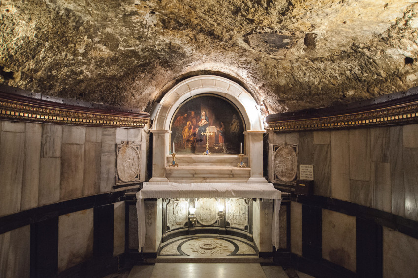 A barlang fölött emelkedik a monumentális templom, amelynek látványa mindenkit magával ragad. Az Angyali üdvözlet templomától csupán néhány száz méterre áll Szent József temploma. Alatta húzódik egy Jézus korából való barlanglakás. A templom emlékeztet Szent József egyszerűségére, csöndben, alázattal végzett szolgálatára, gondoskodó szeretetére. Szent József, légy az apák oltalmazója!