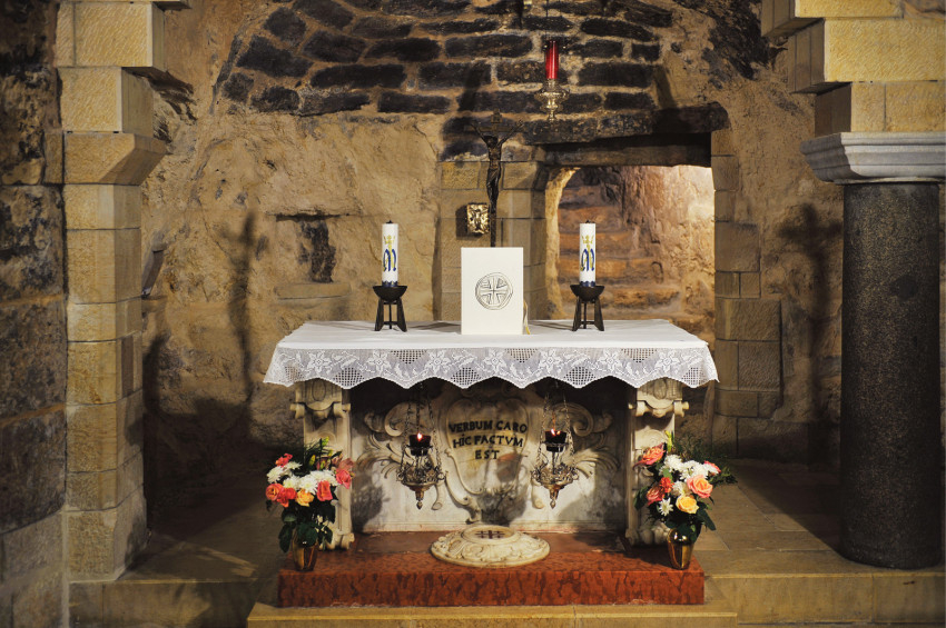 Názáret sziklás hegyoldalba épült, többségében palesztinok által lakott település. A barlangok lakásként való használata természetes volt Jézus korában. A megtestesülés temploma már messziről hívogatóan, de nem hivalkodóan mutatja azt a helyet, ahol Isten belépett az emberiség történelmébe. Csöndben, meghatottan lépjünk be a templomba. A lépcsőkön lejutva a templom legalsó szintjén található az a barlang, ahol felirat jelzi: „Verbum caro factum est” – Az Ige testté lett. Mária itt mondta ki az igenjét.
