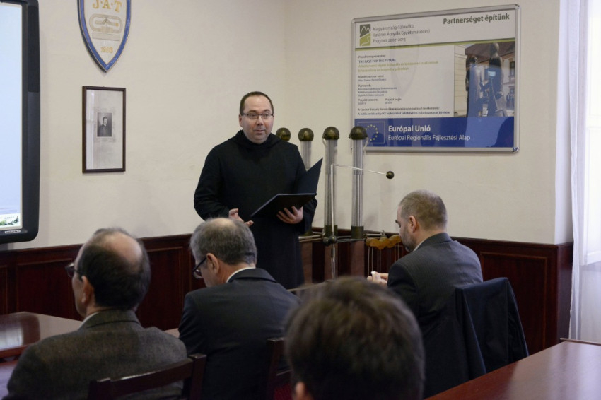 Horváth József, a Dr. Kovács Pál Könyvtár és Közösségi Tér igazgatóhelyettese Győr 19. századi történetét, a bencés rend helyi működésének környezetét mutatta be előadásában. A 18. század második felében a 12 ezer lakosú Győrben öt szerzetesrend működött, akik nagy hatást gyakoroltak a hitéletre. Különösen a jezsuiták, akik nemcsak gimnáziumot működtettek, hanem lelkipásztori tevékenységük is jelentős volt, templomukban számos hitbuzgalmi társulat talált otthonra. A gimnázium és a társulatok még a jezsuita rend 1773-as feloszlatása után is működhettek, csupán II. József egyházpolitikája okozott némi visszaesést. A bencés jelenlét később nemcsak a hitéletre, hanem Győr kulturális életére is nagy hatást gyakorolt. „Győr városában volt igény a kultúrára, és ebben nagy szerepe volt a bencés gimnáziumnak” – hangsúlyozta Horváth József.