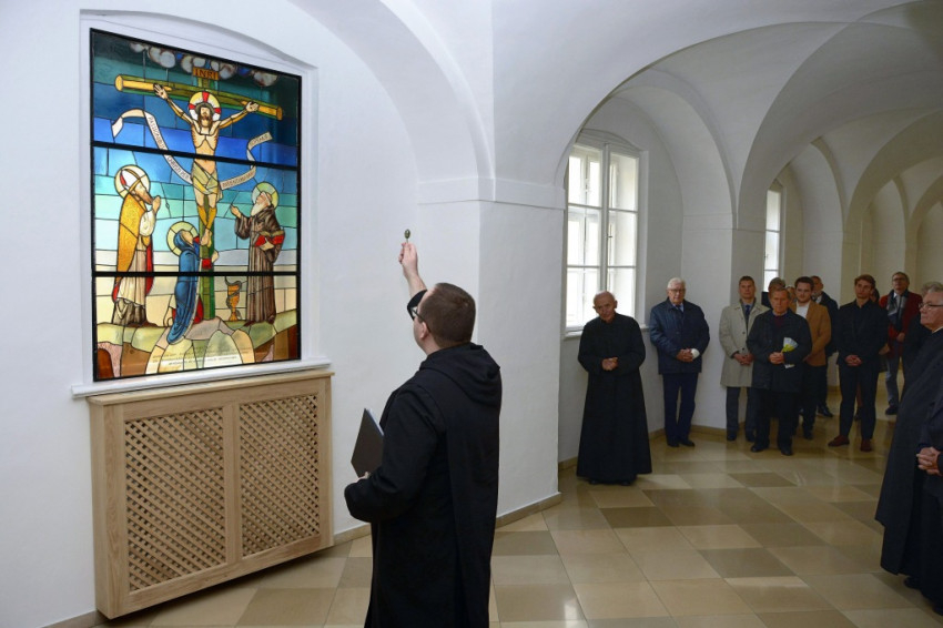 A konferencia első szekciója a napközi imaórával zárult, melyet az évfordulóra készült ólomüveg ablak megáldása követett a perjelség folyosóján. A Golgotát ábrázoló ablak, Bráda Tibor és munkatársai alkotása, a Bencés Diákok Győri Egyesületének felkérésére készült.