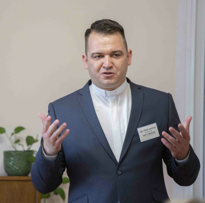 E három területet nem lehet egymás nélkül értelmezni – fogalmazott Törő András, majd elmondta, hogy a konferenciának az a célja, hogy amikor az egyházmegyei fenntartású szakkollégium megnyitja kapuit az egyetem – az előadók, oktatók, diákok – előtt, megmutatja azt is, hogy nyitott arra, hogy ott találkozzon a hit a tudománnyal, amelyek elválaszthatatlanok egymástól.