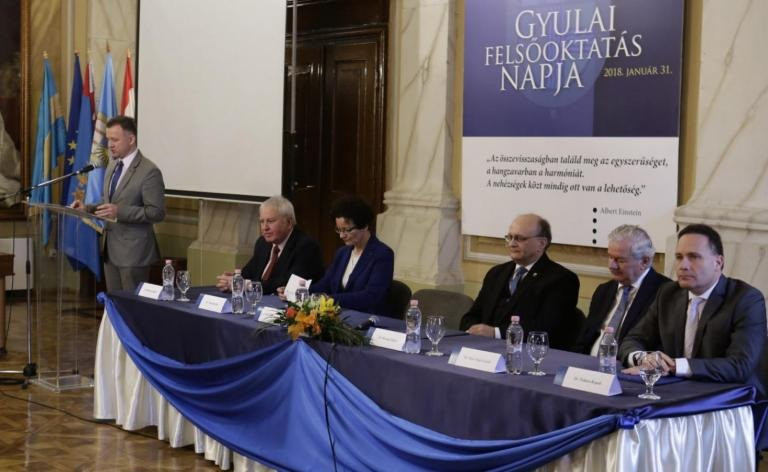 Takács Árpád, a Békés Megyei Kormányhivatalt vezető kormánymegbízott emlékeztetett, hogy a kilencvenes évek elején a helyi közösségekért tenni akaró embereknek köszönhetően indult el a felsőoktatás Gyulán. Hozzátette: a kormányhivatal stratégiai partnerségre törekszik a felsőoktatás szereplőivel.