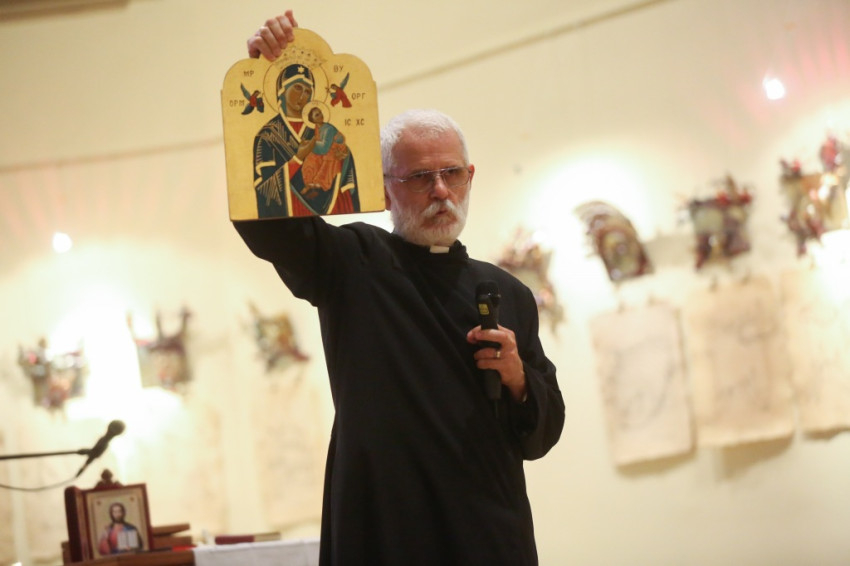A Kisboldogasszony-napi görögkatolikus Szent Liturgiát követően Ivancsó István teológiatanár az ikon teológiájának kifejtésével kezdte előadását a jezsuiták fővárosi központjában.