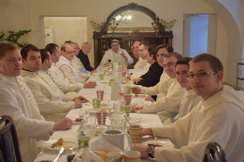 A csornai apátság szerzetesein kívül a lelkigyakorlaton részt vettek a Nagyváradról érkezett premontrei testvérek apátjuk kísértetében, valamint a rendhez közel álló egyházmegyés papok is.