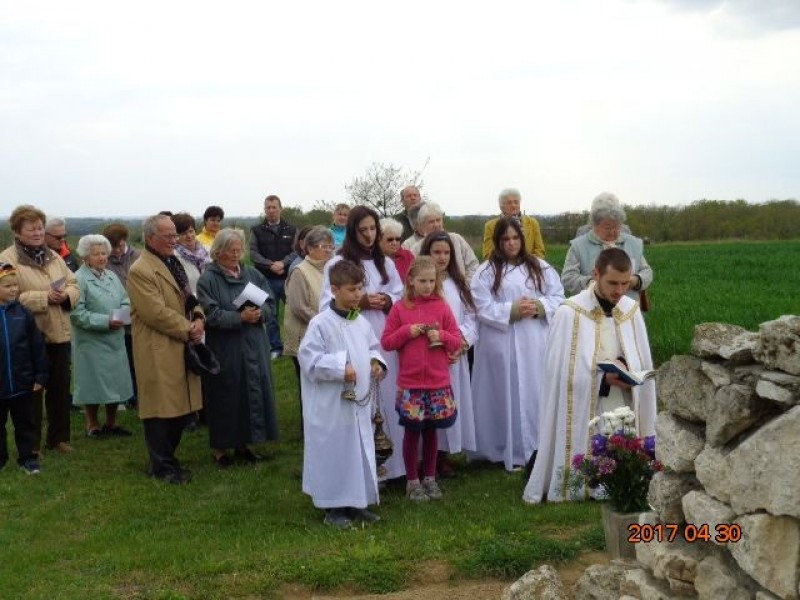 Vasárnap délután, Baj község határában, a Szent András dűlő búzaszentelő, nagy keresztjénél zajlott le a szertartás, Váradi Kristóf tatai káplán vezetésével.