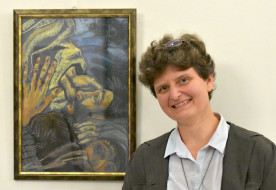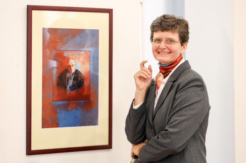A történész rámutatott: Mindszenty Józsefről nagyon nehéz jó portrét alkotni. Rengeteg portré, szobor készült róla, de csak nagyon kevés közülük az igazán kiemelkedő alkotás. Fecske Orsolya itt kiállított képei ezek közé tartoznak.