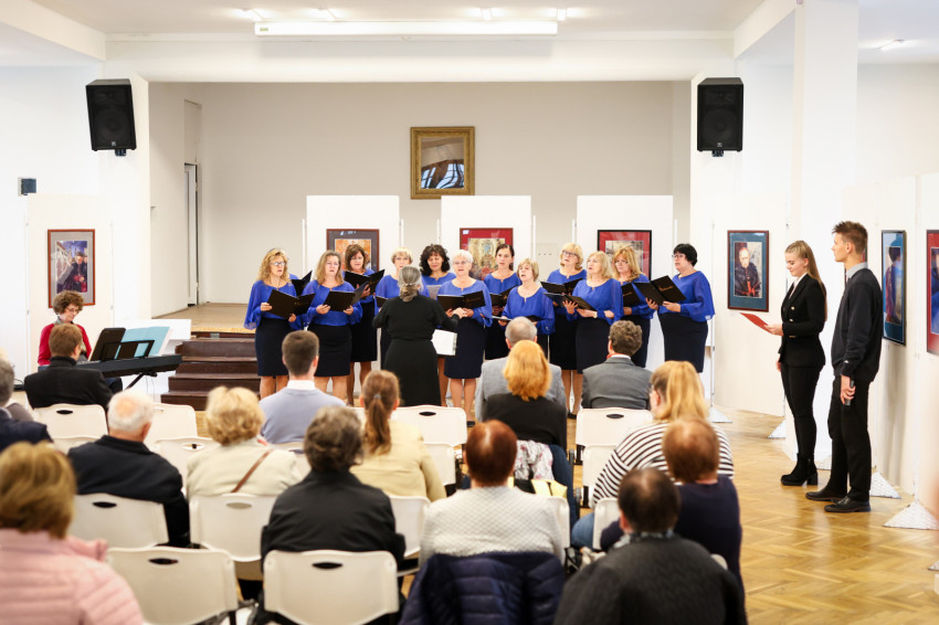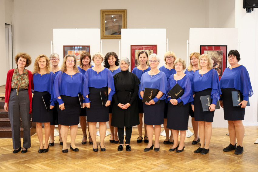 A kiállításmegnyitón gyönyörű zenei szolgálatot végzett a Philomela női kar, az angyalföldi óvodák dolgozóiból álló kórus.