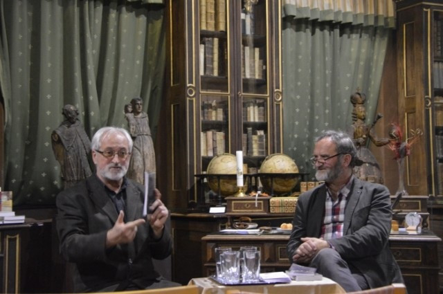 A Savaria University Press gondozásában megjelent könyveket a kiadó ezen az estén féláron kínálta megvásárlásra. Az est kezdetén Fűzfa Balázs irodalomtörténész beszélgetett Pusztay János nyelvészprofesszorral a Köröttem a világ című újonnan megjelent könyvéről. A múlt év folyamán, a Genius Savariensis Szabadegyetem szervezésében – több más kurzus mellett – került megrendezésre egy a migrációs témával is foglalkozó kurzus, amelyen a résztvevők a professzor markáns véleményét is megismerhették e témával és a napjainkat is érintő jelenséggel kapcsolatban. Most megjelent kötetében többek között erről is olvashatunk.