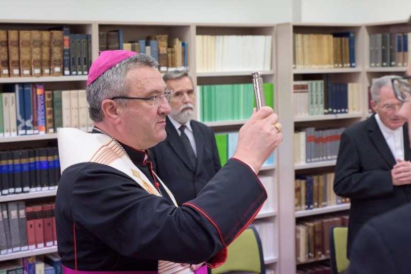 A köszöntő szavak után Veres András megyéspüspök megáldotta a könyvtárat, és imádkozott azokért, akik létrehozták, illetve azokért, akik használni fogják azt.
